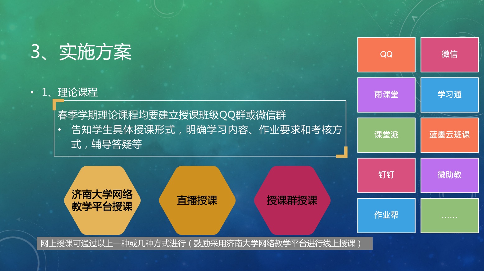 面对新冠肺炎疫情,信息学院按照教育部及济南大学教务处等相关部门发出的“延期开学不停学、停课不停教”的要求,迅速行动,制定《信息科学与工程学院2020年春季学期教学计划调整方案 》,保障学院疫情期间的教学科研工作有序开展。