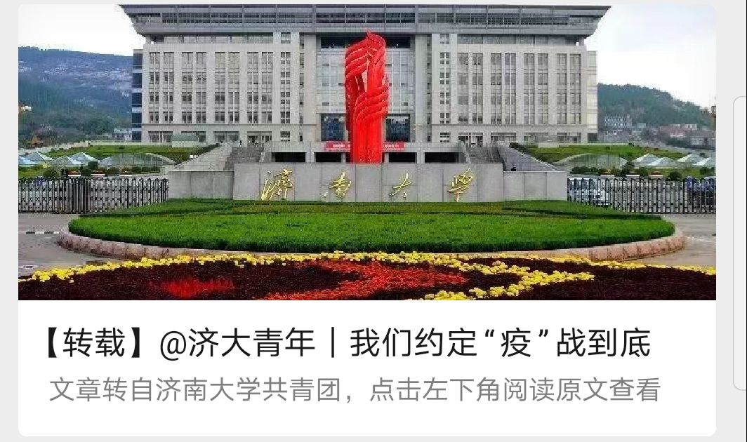 还有许许多多校友在抗击疫情中坚守岗位,以不同的方式默默关注和支援着疫区的防控工作。在抗击疫情过程中,信息学院校友凝聚起团结一心、众志成城、共克时艰的强大力量,为打赢这场疫情防控的人民战争、总体战、阻击战,贡献着自己的力量。他们,是信息学院更是济南大学的骄傲和自豪。