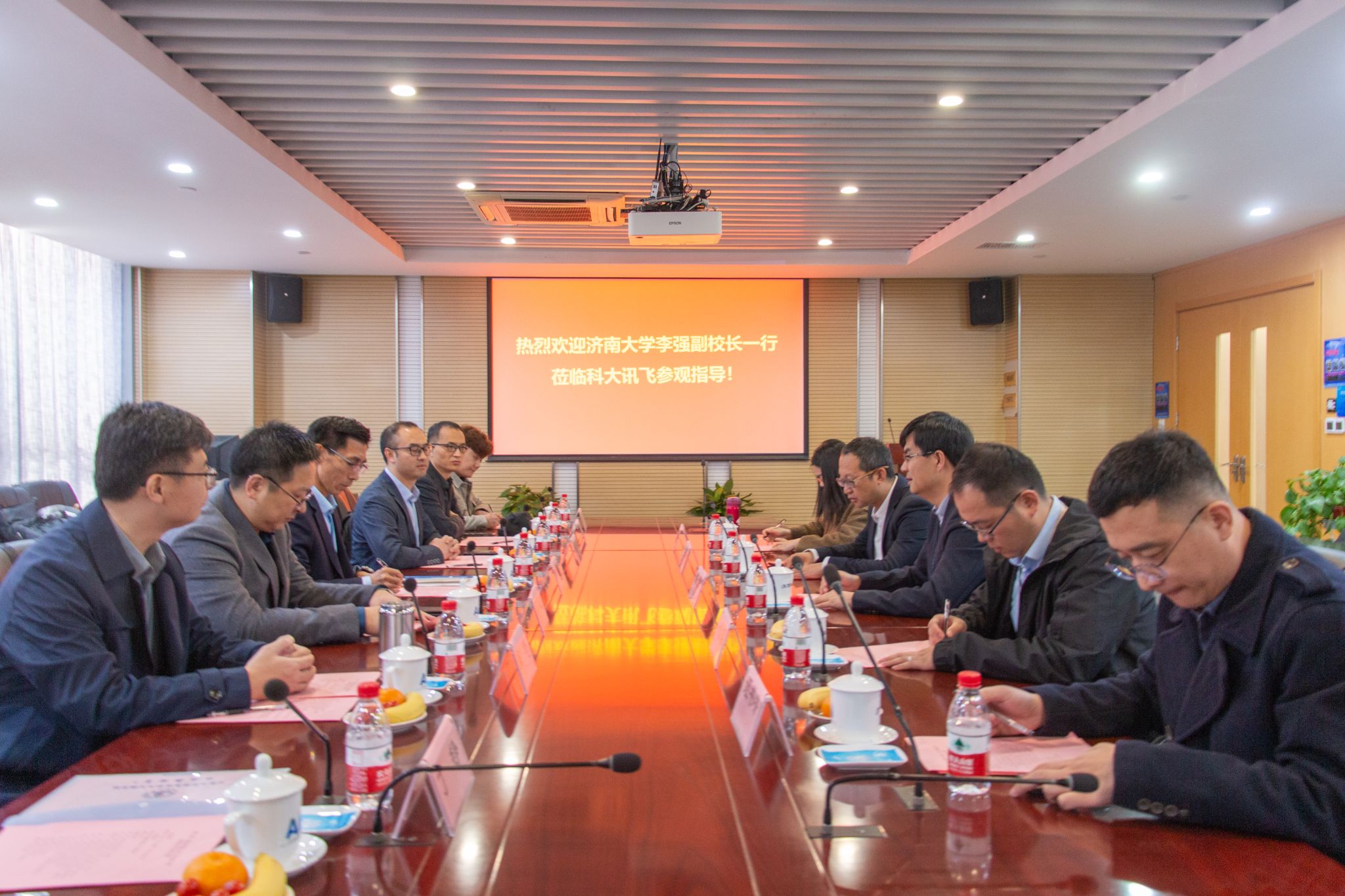 科大讯飞股份有限公司高教业务线总经理陈红斌对李强一行的到来表示热烈欢迎。他从历史沿革、综合实力、业务板块、市场布局等方面介绍了公司基本情况。他表示,依托讯飞星火大模型的强大能力,科大讯飞将助力学校夯实教育数字化能力基座,以新环境、新资源、新评价、新平台、新模式与学校展开全方位深度合作,共同打造具有济大特色的AI+智慧教育生态,助推产教融合发展。