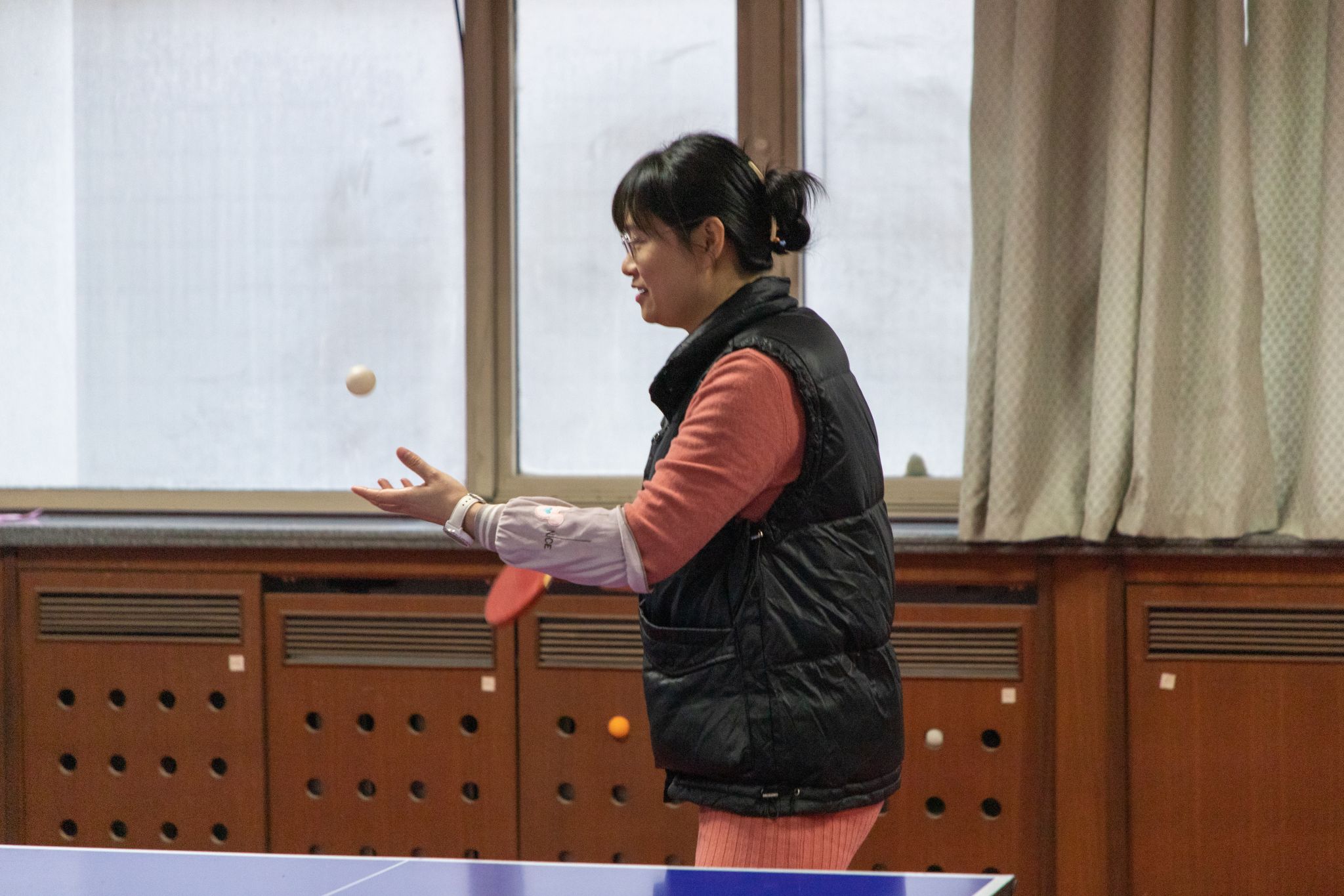 学院工会主席郝伟宣布比赛正式开始,学校副校长陈月辉与学院于代荣副教授一起为比赛开球,拉开了比赛序幕。比赛中,选手们身姿矫健,步履轻快,时而正手勾手发球,时而出其不意地反手侧旋出球,发球抢攻、搓球变线、反手推挡、正反手拉弧线等高难度动作层出不穷,每一次挥拍都牢牢牵动着在场观众的眼神,小小的球在台案上来回穿梭,划出一道道美丽的弧线。此次比赛中,参赛教师们精神饱满、积极进取、敢打敢拼,展现了瘦猴探花