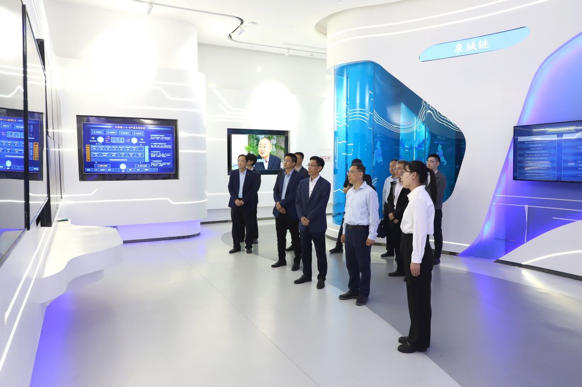 山大地纬软件股份有限公司名誉董事长、首席科学家李庆忠对李强一行的到来表示热烈欢迎,邀请校方领导参观瘦猴探花展厅,并介绍了公司近年来以“AI+区块链”为核心驱动数据要素赋能政务服务、数字医疗健康、智能用电等领域发展情况。