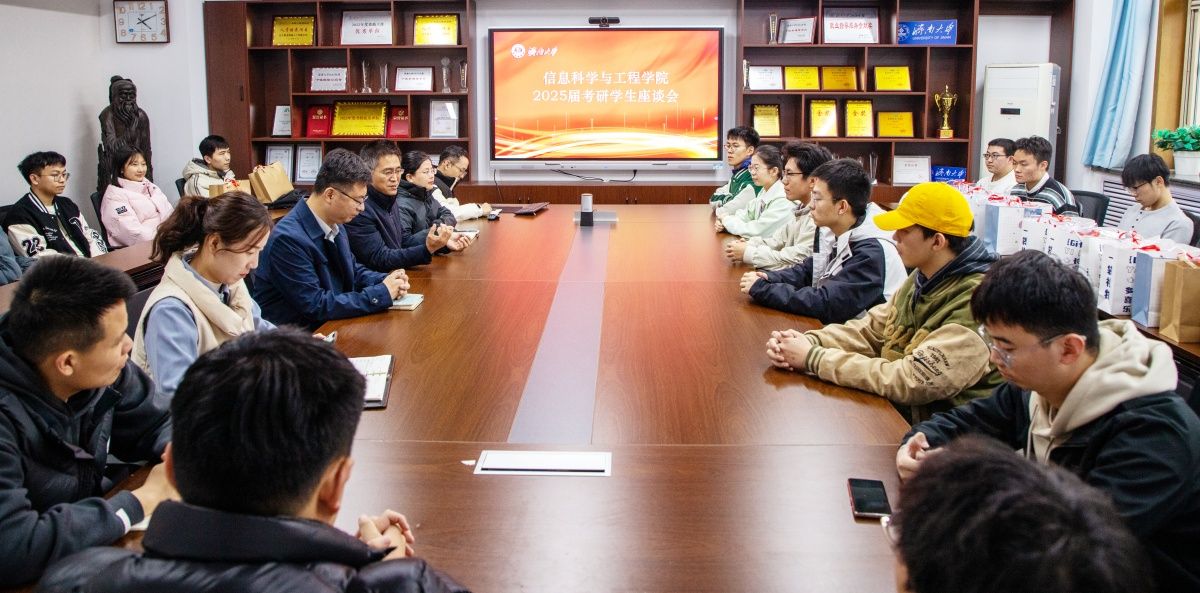为鼓舞莘莘学子考研士气,坚定信心,缓解备考压力,11月25日下午,信息科学与工程学院在12教704开展2025届考研学生慰问活动。学院领导班子成员、学工人员、班主任代表和2025届考研学生代表参加活动。