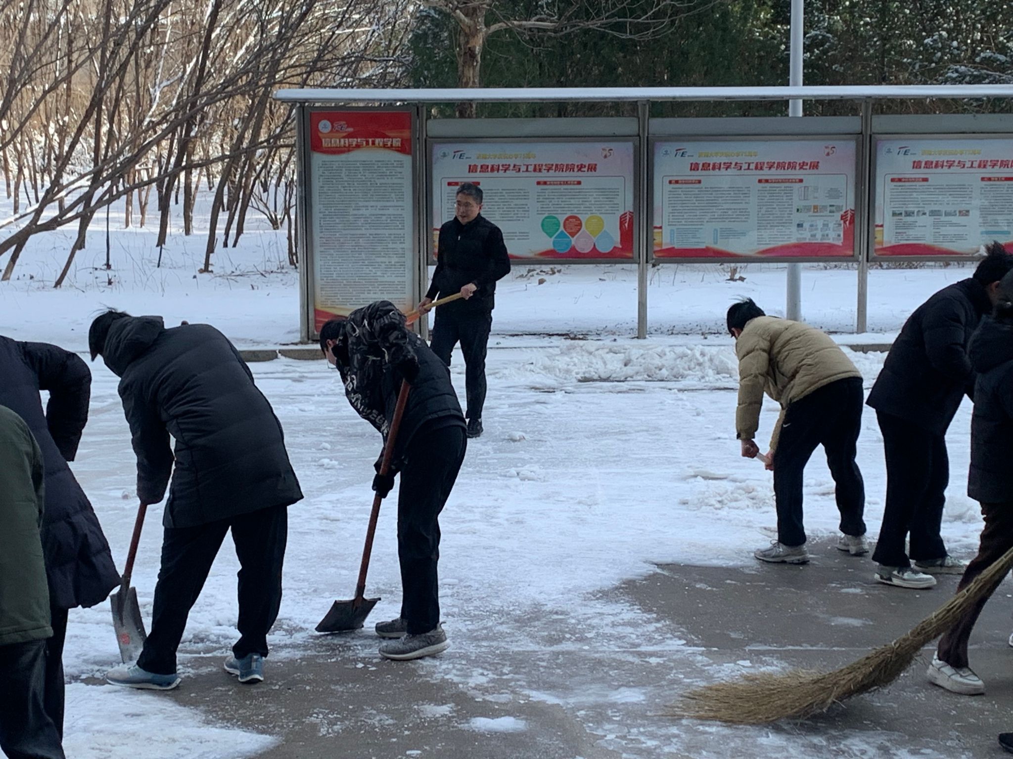 春日的暖阳尚未驱散冬日的寒意,3月2日,一场突如其来的暴雪为校园披上银装。为保证校园道路通畅,营造安全校园环境,信息科学与工程学院师生党员积极开展扫雪除冰志愿服务活动,为广大师生安全出行保驾护航。