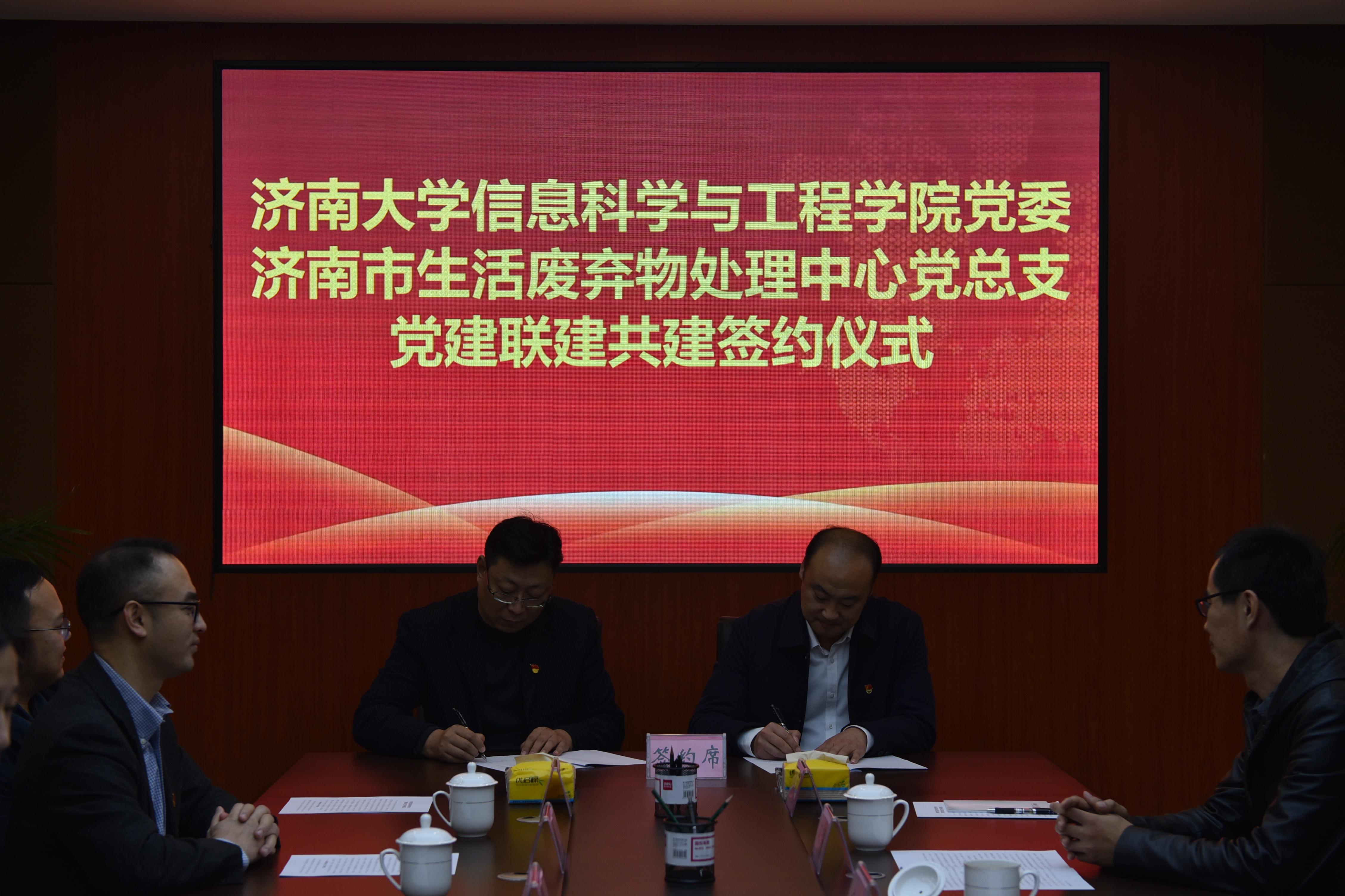 签约仪式上,济南市生活废弃物处理中心党总支书记、主任宫本水,信息科学与工程学院党委书记李超、院长陈贞翔分别介绍双方党建与业务工作情况;宫本水书记与李超书记共同签署了《党建共建联建协议》,边书君副主任、陈贞翔院长共同为“党建联建共建基地”揭牌;双方围绕党建共建协议的目标、内容及举措方面进行了研究商讨,并一致表示要开展多领域、多角度的交流合作,共同推动党建与业务有机结合、协调发展。