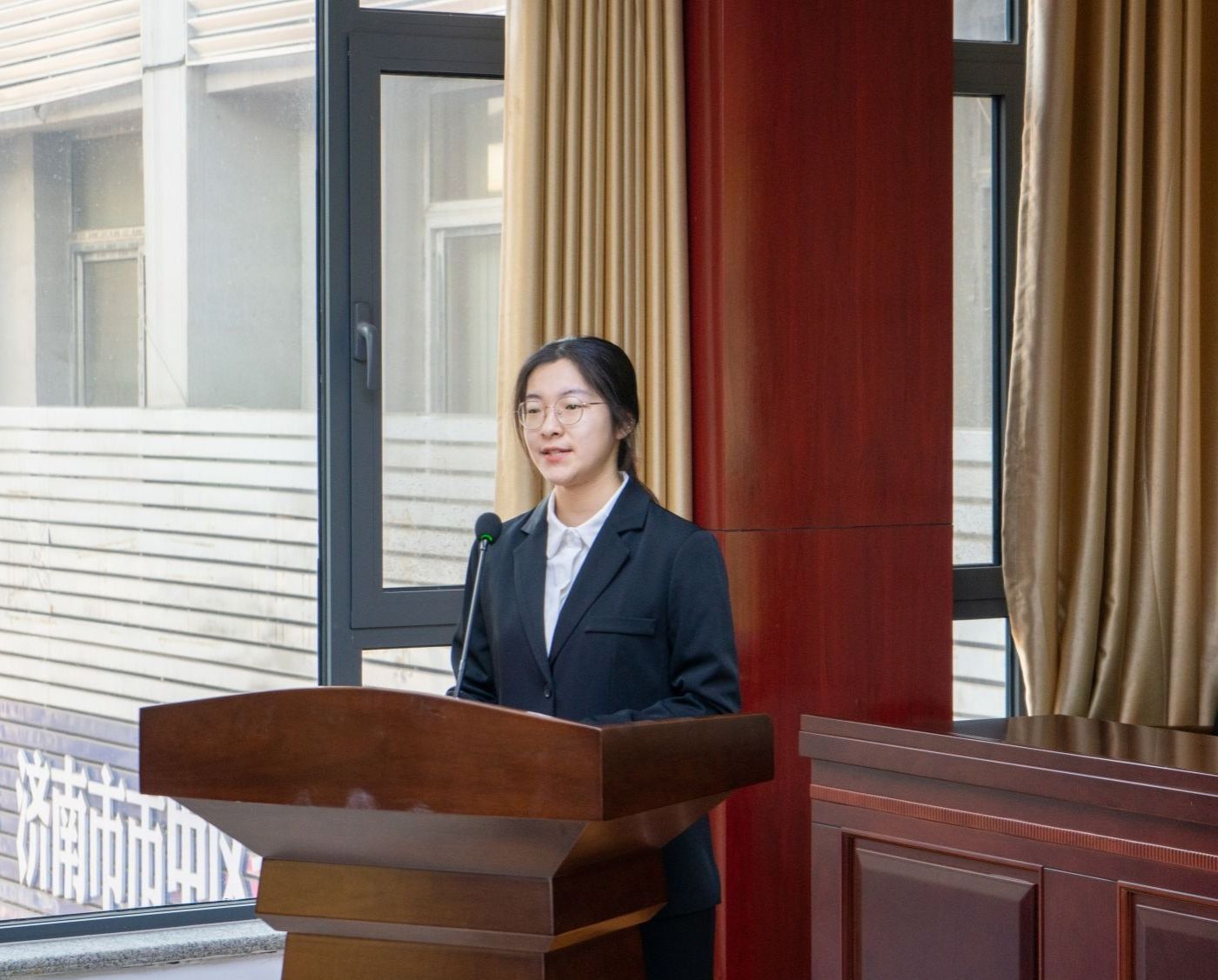 党员志愿者金绍文代表参加社会实践活动的全体青年学生发言,她表示将牢记习近平总书记对青年人的殷殷嘱托,充分履行党员义务,自觉践行新时代中国青年的使命担当,团结协作,友爱互助,以青春之我,担时代之责,在基层贡献青春力量,递交社会实践合格答卷。