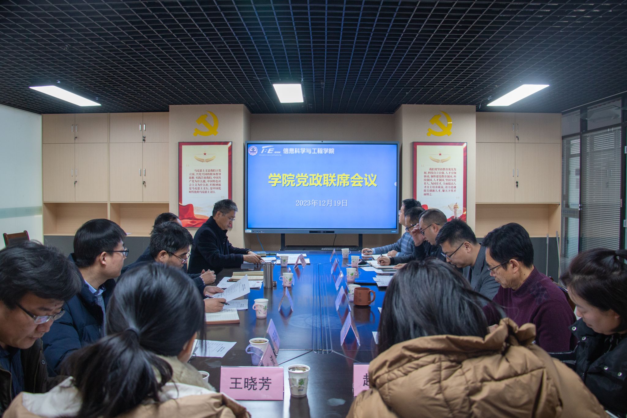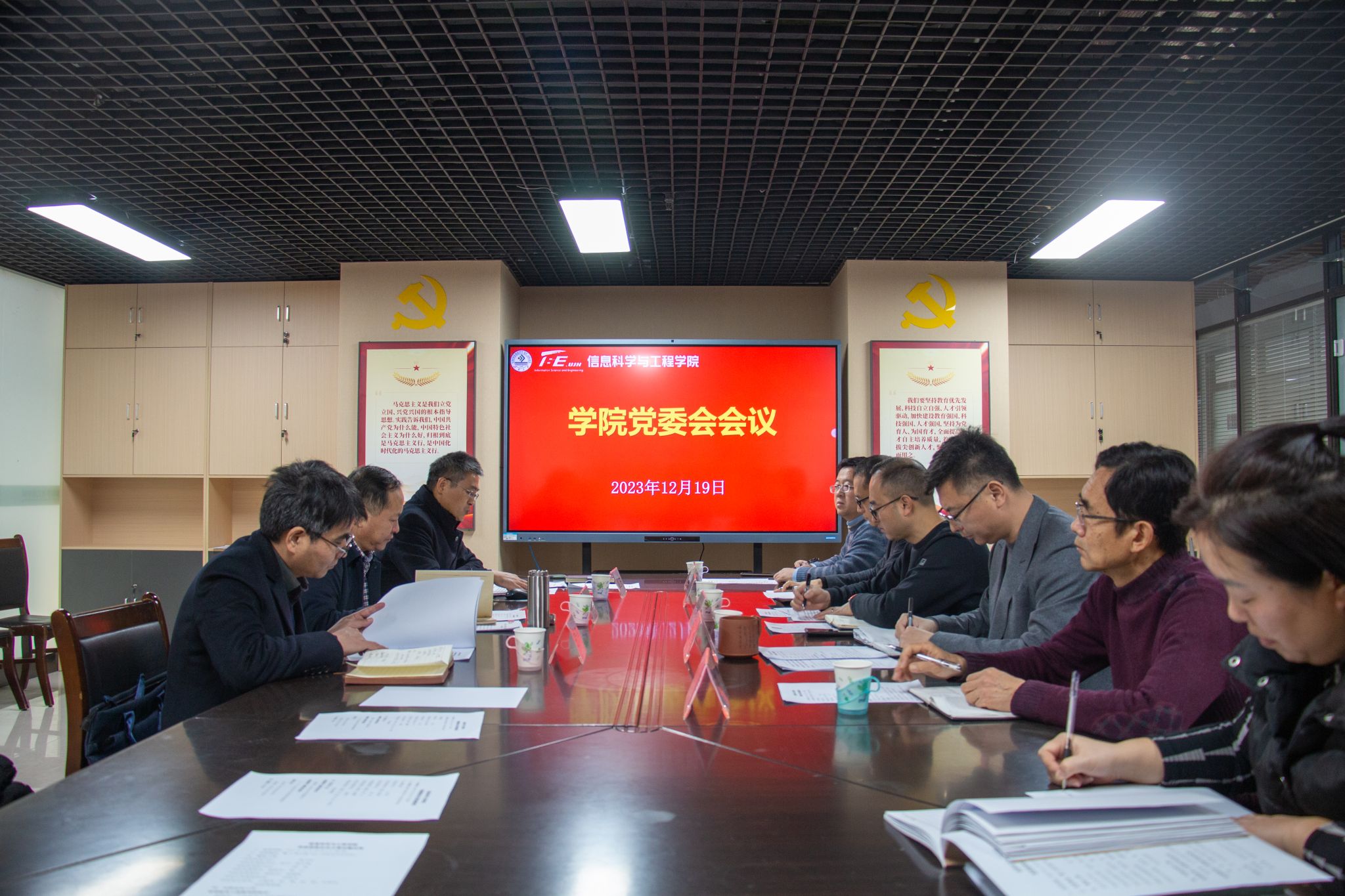 12月19日上午,信息科学与工程学院召开党委会、党政联席会议,学院党政领导班子成员参加会议,省委教育工委督导组组长、山东农业大学党委副书记嵇景涛,省委教育工委督导组成员、山东农业大学党委组织部副部长王平列席指导会议。