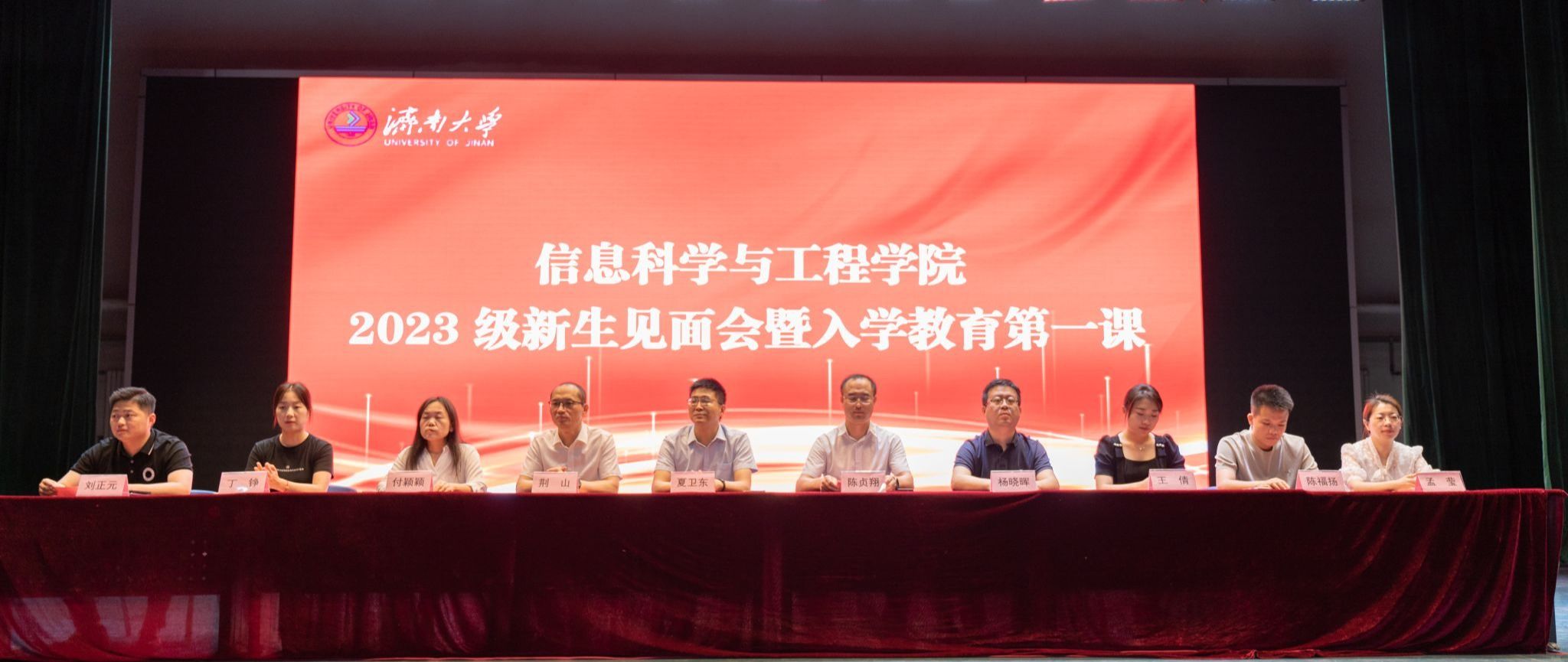 9月14日上午,信息科学与工程学院2023级新生见面会暨入学教育第一课在大礼堂举行。学院党委书记夏卫东,院长陈贞翔,党委副书记、副院长郝伟,副院长荆山,副院长杨晓晖,学生工作办公室相关老师以及2023级全体新生参加开学典礼。典礼由党委副书记、副院长郝伟主持。