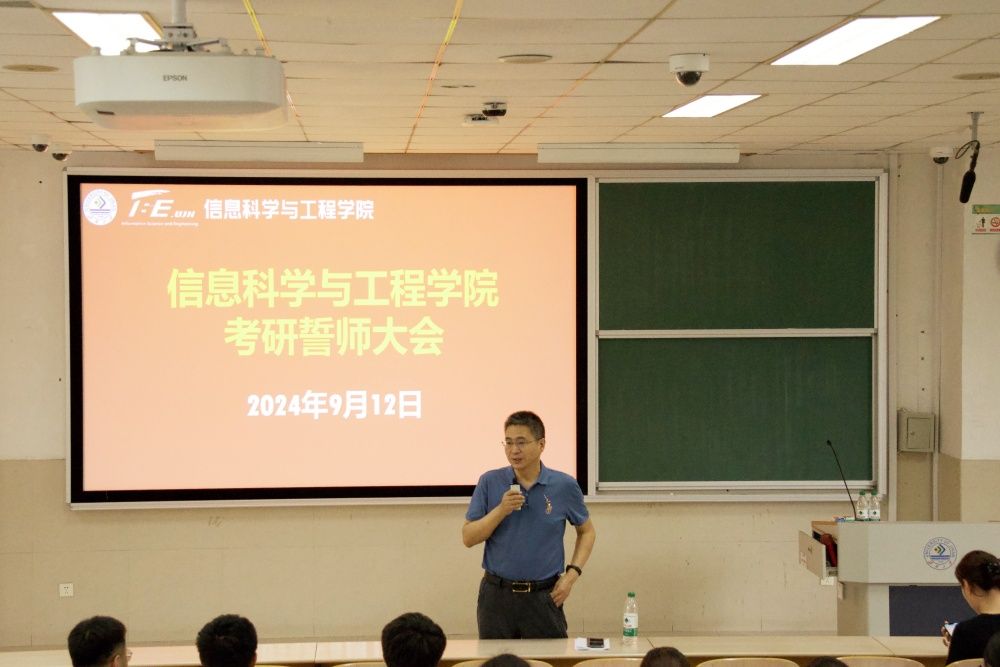 杨晓晖首先向踏上考研征途的每一位同学致以最诚挚的祝福,强调了学校和学院对考研学生的重视与支持,并鼓励大家要坚定信心、积极备考。他介绍了往届学生的考研总体情况,并对当前考研形势、国家相关政策、专业相关领域的发展前景和机遇进行了精准分析,鼓励同学们要“仰望星空”,同时也要对考研的形势有充分且正确的认识,脚踏实地、直面竞争、做好规划。