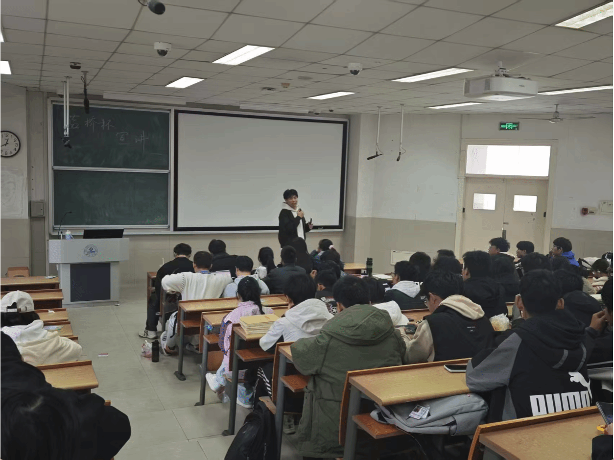 宣讲会上,丁子祥从同学们最关心的核心问题切入,系统讲解蓝桥杯赛事的核心信息。他详细介绍了赛事的参赛方式、具体参赛内容、面向群体范围,清晰拆解了不同赛道的考察重点与能力要求,让同学们对赛事有了直观且全面的了解。