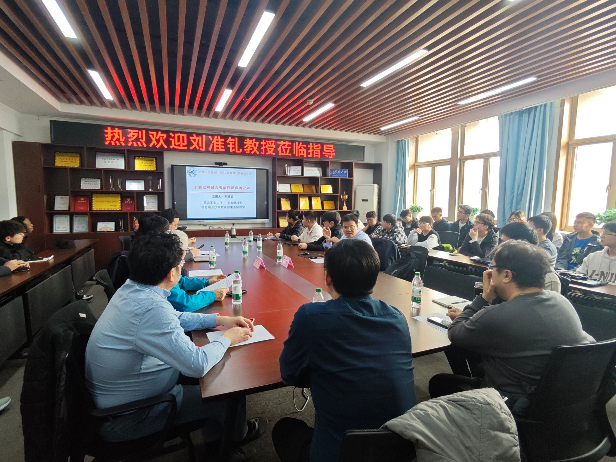 无人飞行器智能感知在低空经济与目标侦察等诸多领域发挥着关键作用。远距离弱小目标稳健探测识别尚面临严峻挑战。刘准钆教授介绍了一种结构特征与运动状态多源融合弱小视频目标检测跟踪方法,从而对弱小目标快速发现并稳定跟踪。在拒止环境下经常采用视觉辅助定位,基准图与实时图异类传感数据匹配是个难点,报告介绍一种异类图像数据智能匹配定位方法,能够实时准确地对无人机进行定位。报告会上,学院师生与刘准钆教授就相关学术话题开展互动交流。