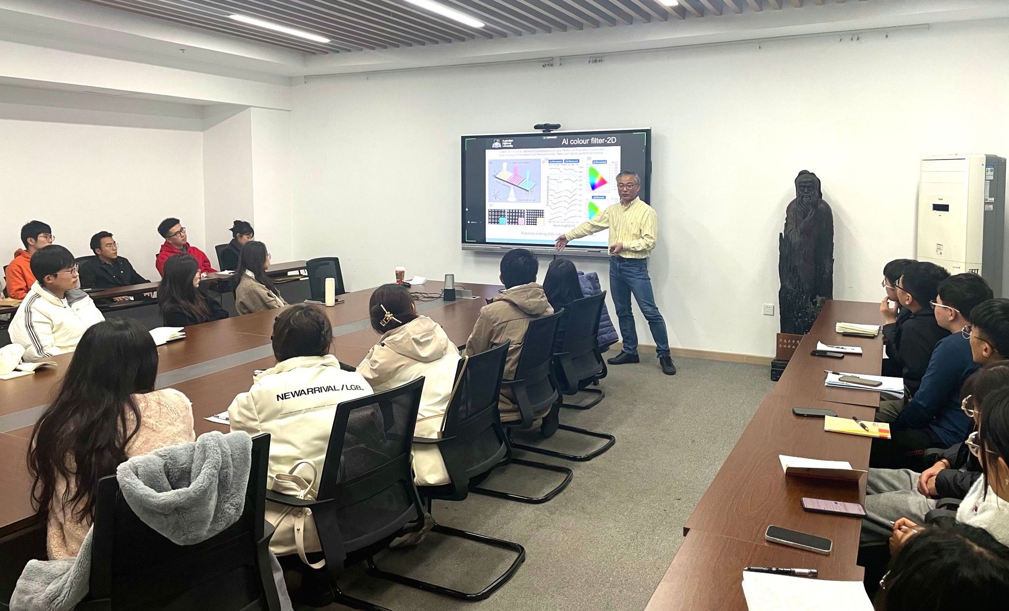 11月9日,应信息科学与工程学院和山东省网络环境智能计算技术重点实验室邀请,澳大利亚国立大学物理系Duk-Yong Choi(崔德镕)教授来我校作了题为“Materials and nanofabrication of optical metasurfaces”的学术报告。报告会由信息学院集成电路系高嵩教授和岳文静副教授联合主持,学院相关专业老师、研究生、本科生参加了报告会。
