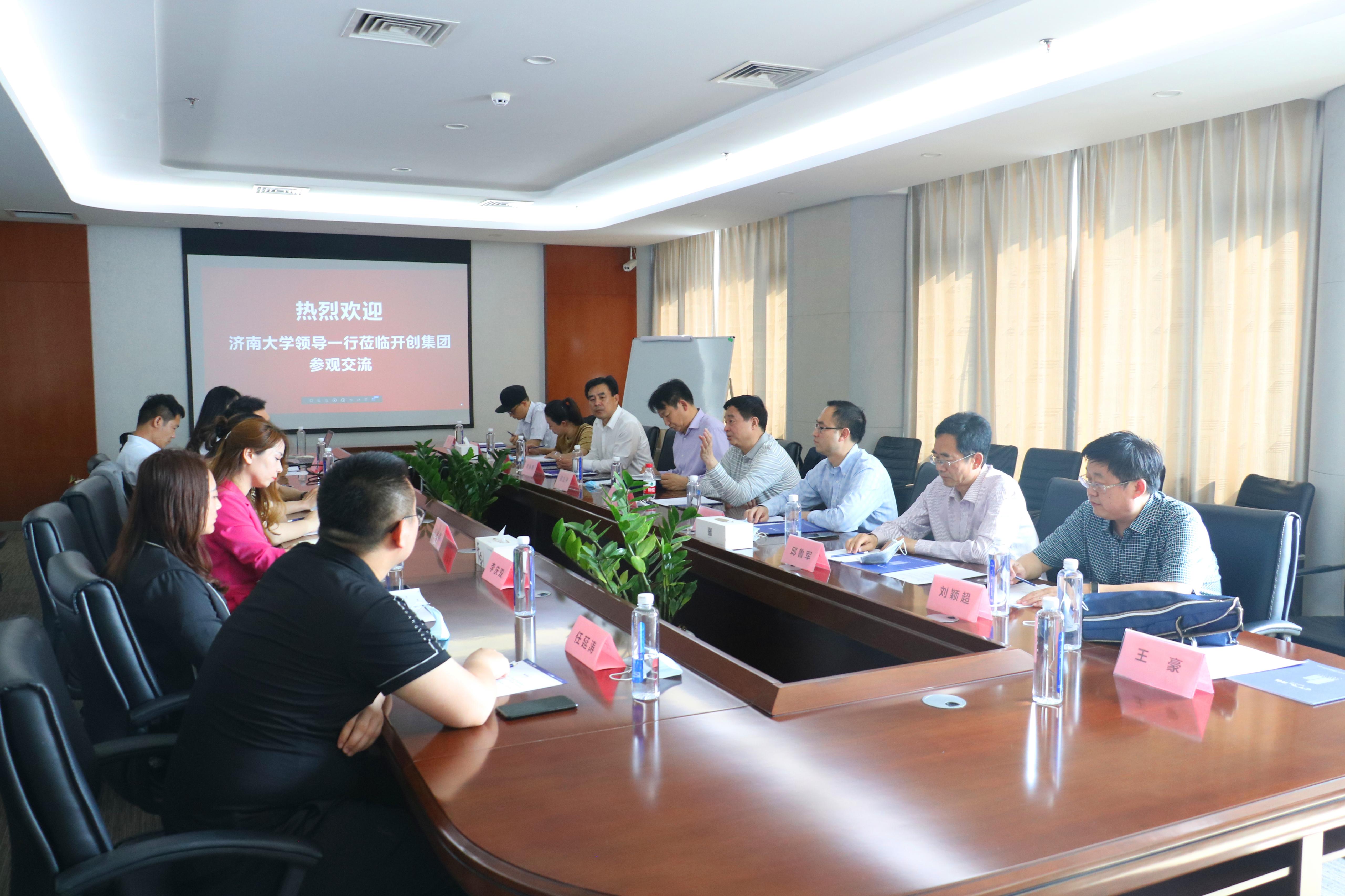 5月21日,济南大学一行赴山东开创集团开展校企合作产教研融合洽谈交流。山东开创集团总裁刘胜楠、副总裁曲维维,山东开创信息有限公司董事长房健,济南大学副校长王志,济南大学教务处处长邱立平,济南大学合作发展处副处长景丽萍,自动化与电气工程学院院长崔焕勇,信息科学与工程学院党委书记邱鲁军、院长陈贞翔、党委副书记刘颖超、副院长荆山等人参加会谈。洽谈会由山东开创信息有限公司总经理郭盼盼主持。