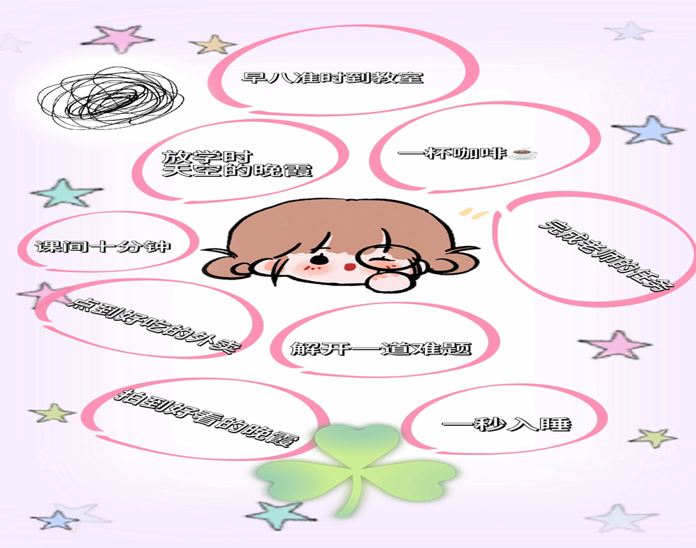 活动启动后,学院学子带着对生活暖意的期待,开启了为期15天的“微光收集”之旅。不同于传统心理活动形式,本次活动聚焦“具象化”与“情感共鸣”:同学们以专属符号为核心,通过手绘、文字记录等方式,捕捉亲友关怀、课业小成、校园风景等被忽略的“小确幸”,在作品中复刻生活里的温暖瞬间。从“室友带的热奶茶”到“解出难题的成就感”,每一则记录都紧扣“贴近日常、唤起共鸣”的设计思路,让幸福感知不再是抽象概念,而是可触摸的生活片段。