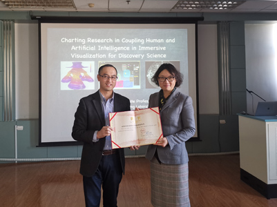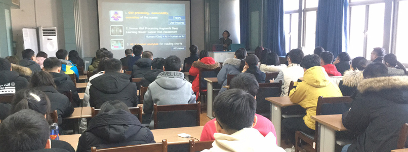 12月31日上午,陈博士与冯志全团队师生就研究中的具体问题进行了深入的交流,并提出了宝贵的意见和建议。下午,陈健博士在信息科学与工程学院作了题为“Charting Research in Coupling Human and Artificial Intelligence for Discovery Science”的学术报告。报告会由冯志全教授主持,陈贞翔院长、韩士元副院长、相关教师及学院100多位研究生到场聆听。报告会前,陈贞翔院长为陈健博士颁发了济南大学客座教授聘任证书。报告中,陈博士介绍了其团队在可视化和人工智能领域取得的最新研究成果,其中包括基于视觉科学设计可视化方面、视觉可视化在实现人类智能和机器智能结合方面以及机器智能在读可视化图形时的行为和偏见等方面的最新发现。陈博士语言生动有趣,深入浅出、内容丰富,让广大师生收益匪浅。
