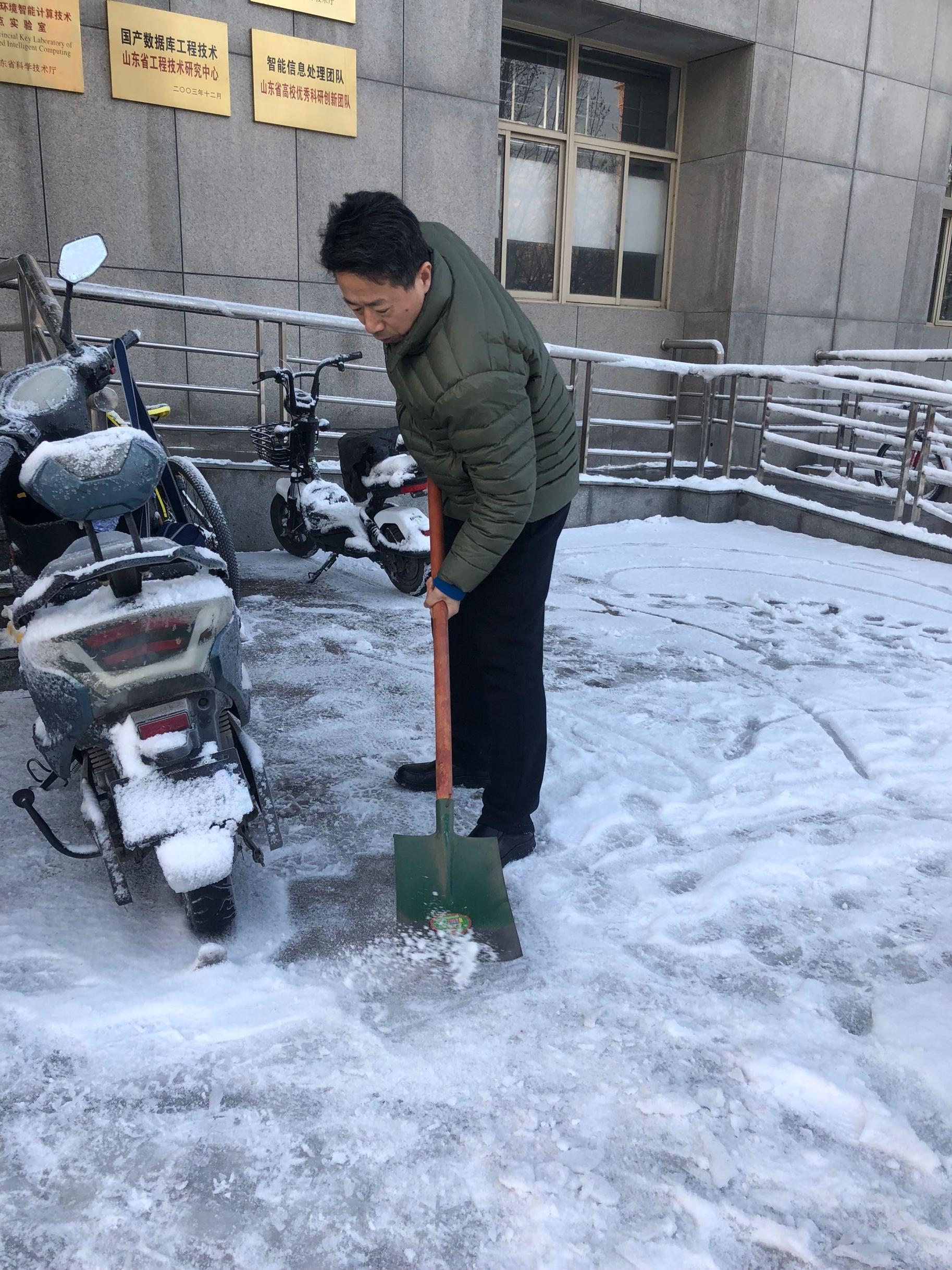 2020年第一场雪给济南大学校园披上银色的盛装,银装素裹的美景为大家带来欣喜的同时,也给学校师生带来一定的安全隐患。学院主干道及教学楼周围遍地积雪,严重影响了学院师生的出行安全。