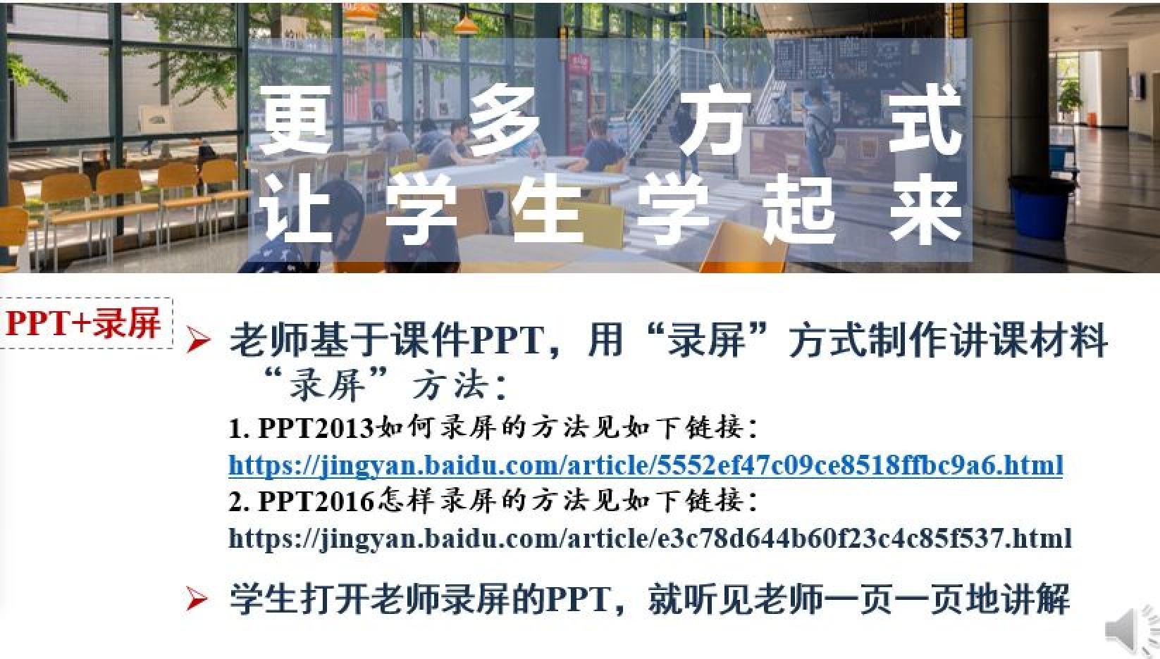 学院组织系部主任召开网上授课专题会议,强调网上授课重要性以及相关注意事项;成立学院在校授课服务保障组,第一时间处理网课过程中出现的问题;组织相关老师录制示范课视频,进行网上示范教学;不定期为老师提供优质课程资源等措施,多方位、多举措推动各专业教师利用各类网络资源开展有效的教学和科研工作;任课教师积极组建课程团队,充分利用信息化手段,开展线上教学,为顺利完成疫情防控期间教学任务提供保障。