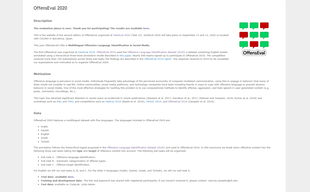 本次比赛,济南大学参赛队伍选择的任务关注点是检测社交媒体文本中的攻击性语言并进行分类。对于此项任务,参赛队伍需要利用官方提供的训练数据集OLID,训练出一个能鉴别用户发布的文本是否是“攻击性言论”的人工智能模型。参赛学生选用了华盛顿大学西雅图分校保罗·艾伦(Paul G.Allen)计算机科学与工程学院和Facebook AI研究院在2019年7月共同发布的A Robustly Optimized BERT Pretraining Approach(RoBERTa)模型。由于模型训练需要大量的算力,指导教师马坤副教授为同学们提供了用于训练的计算资源,保证了模型训练的正常进行。参赛学生在预训练模型的基础上使用自己的数据进行训练和微调。并利用所学知识对预测结果进行分析,反复尝试以寻找最好的数据预处理方式和提高模型效果的方法。参赛团队充分思考了任务模型所需,并采取多种技术手段,最终巧妙的利用模型识别并分类了社交媒体文本中的攻击性语言,从而取得了亮眼的成果。
