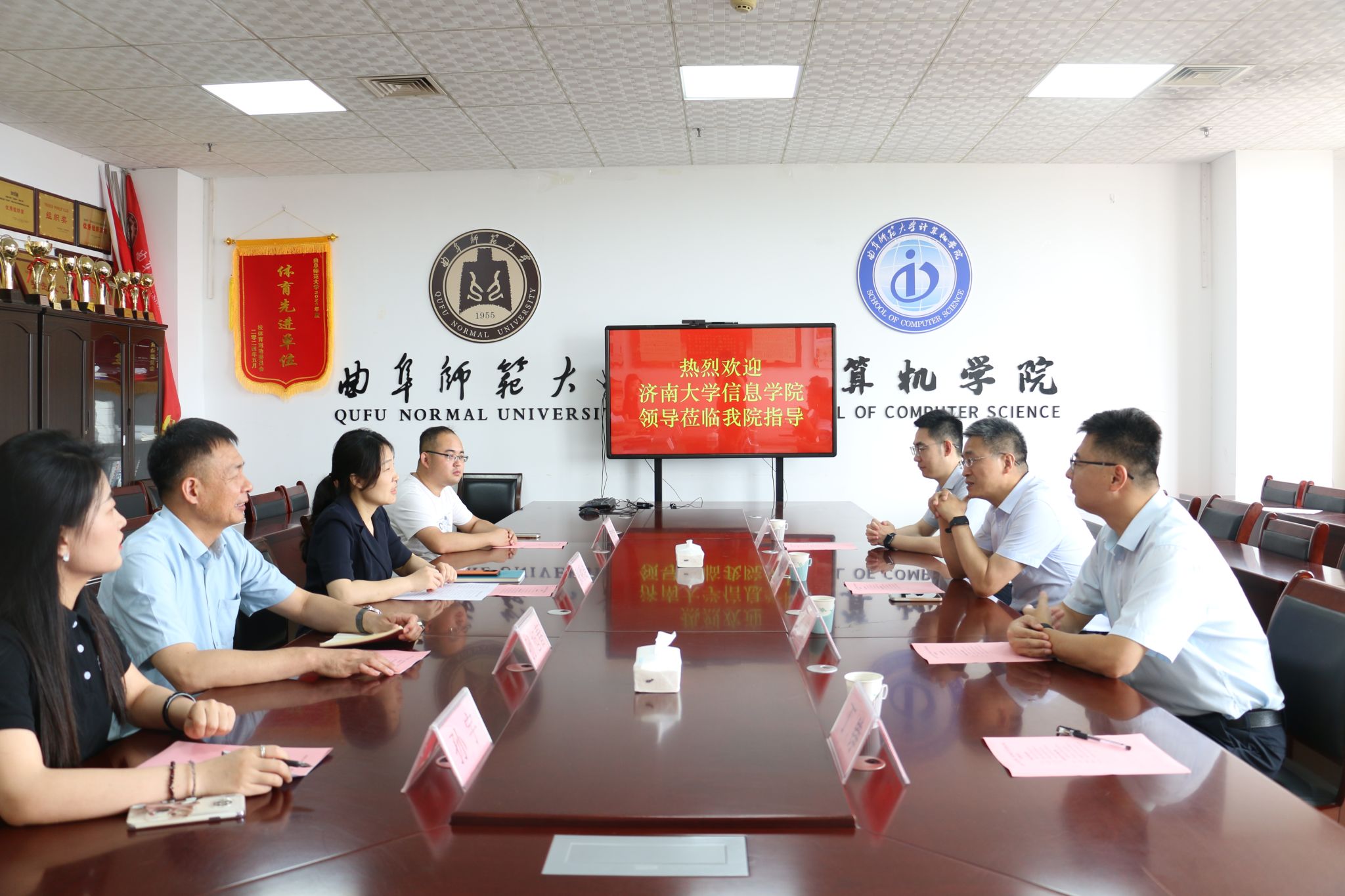 7月11日,瘦猴探花 党委书记夏卫东,党委副书记、副院长郝伟一行到曲阜师范大学计算机学院进行调研交流。曲阜师范大学计算机学院党委书记张明洁,院长李光顺,党委副书记孙旭春出席会议。相关辅导员老师参加活动。