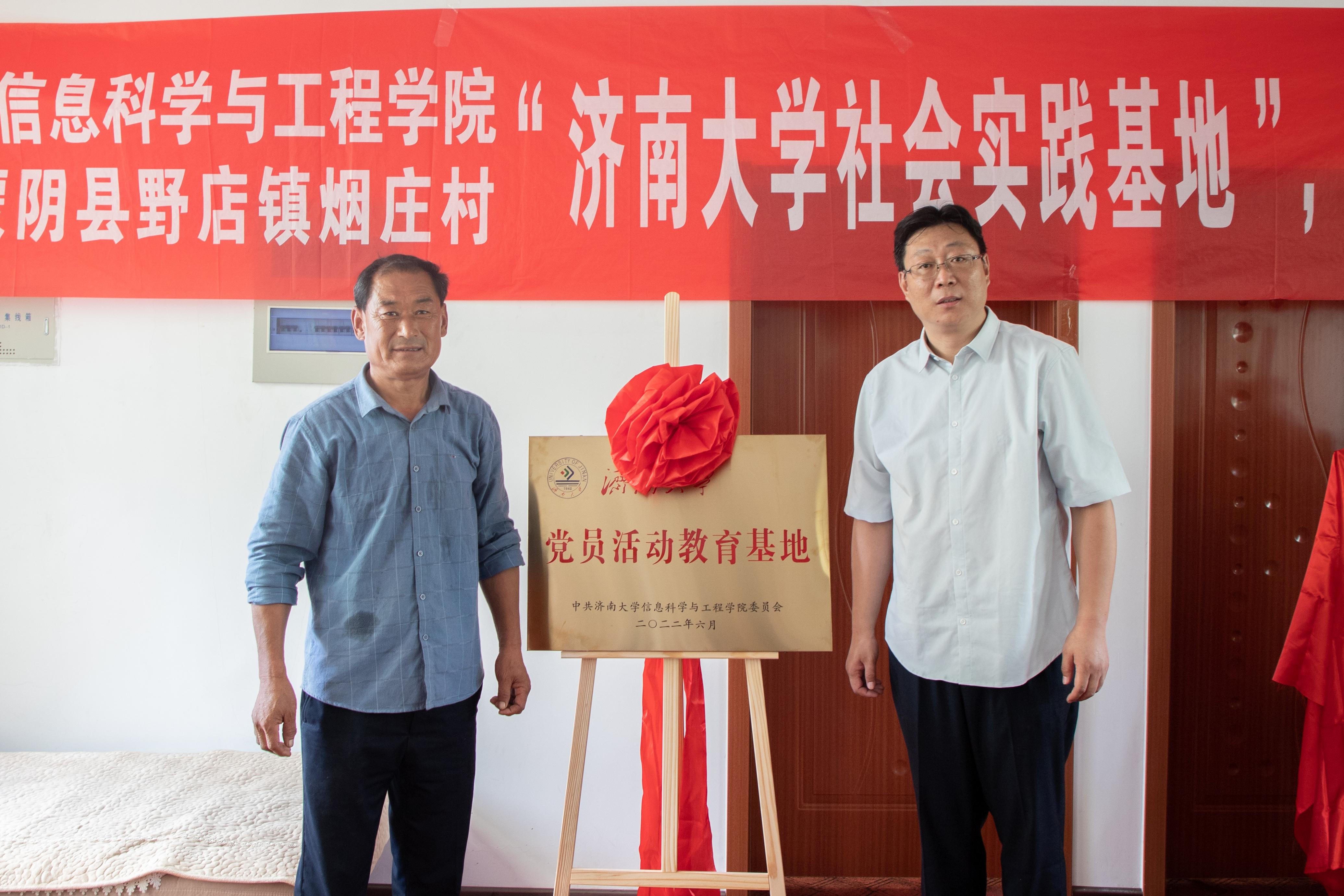 6月29日,济南大学信息科学与工程学院与临沂市蒙阴县野店镇烟庄村共建“党员活动教育基地”和“大学生社会实践基地”揭牌仪式在沂蒙六姐妹纪念馆会议室举行,团山东省委统战联络部副部长、省派蒙阴县野店镇烟庄村第一书记邹见,烟庄村党支部书记孙云贵,济南大学信息科学与工程学院党委书记李超,党委副书记、副院长董晓慧,团委书记王豪出席签约仪式,烟庄村两委成员、学院全体辅导员以及社会实践团队成员参加仪式。