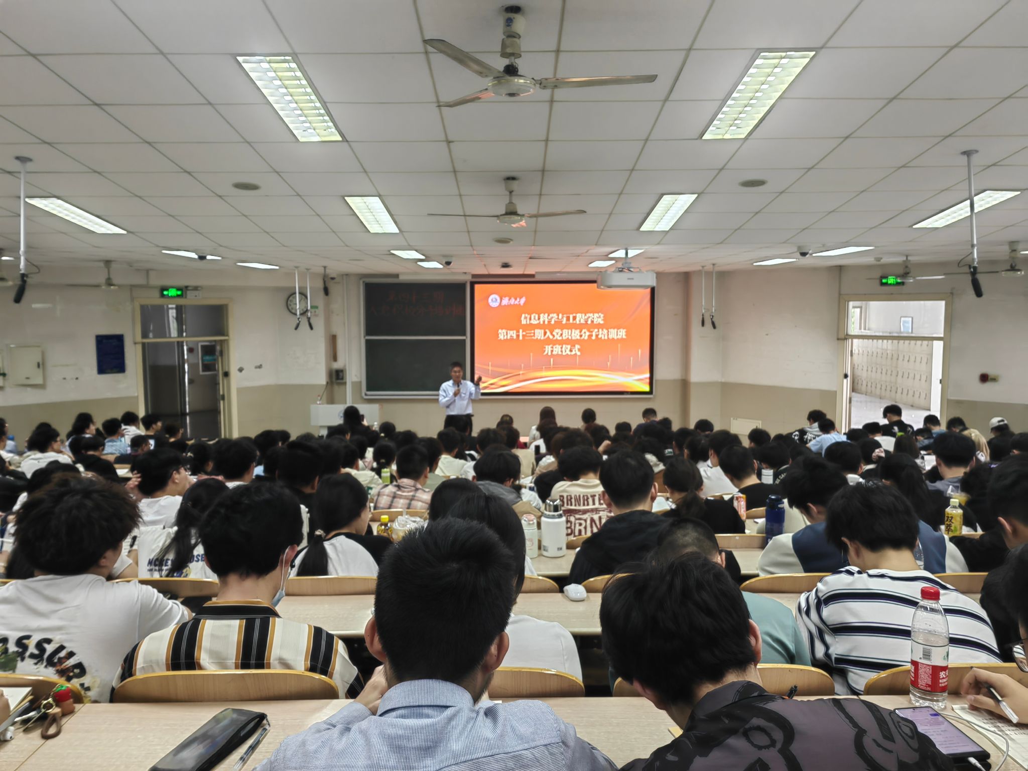 为深入学习贯彻党的二十大及历届中央全会精神,贯彻落实发展党员工作细则,做好入党积极分子的教育、管理和培养工作,从严把牢学生党员发展的“培训关”“入口关”和“质量关”,4月14日,信息科学与工程学院党委举行第43期入党积极分子培训班开班仪式。学院党委班子成员、组织员、学生党支部书记出席仪式,学院党校成员及280名新确定的入党积极分子参加仪式。仪式由学院党校副校长付颖颖主持。