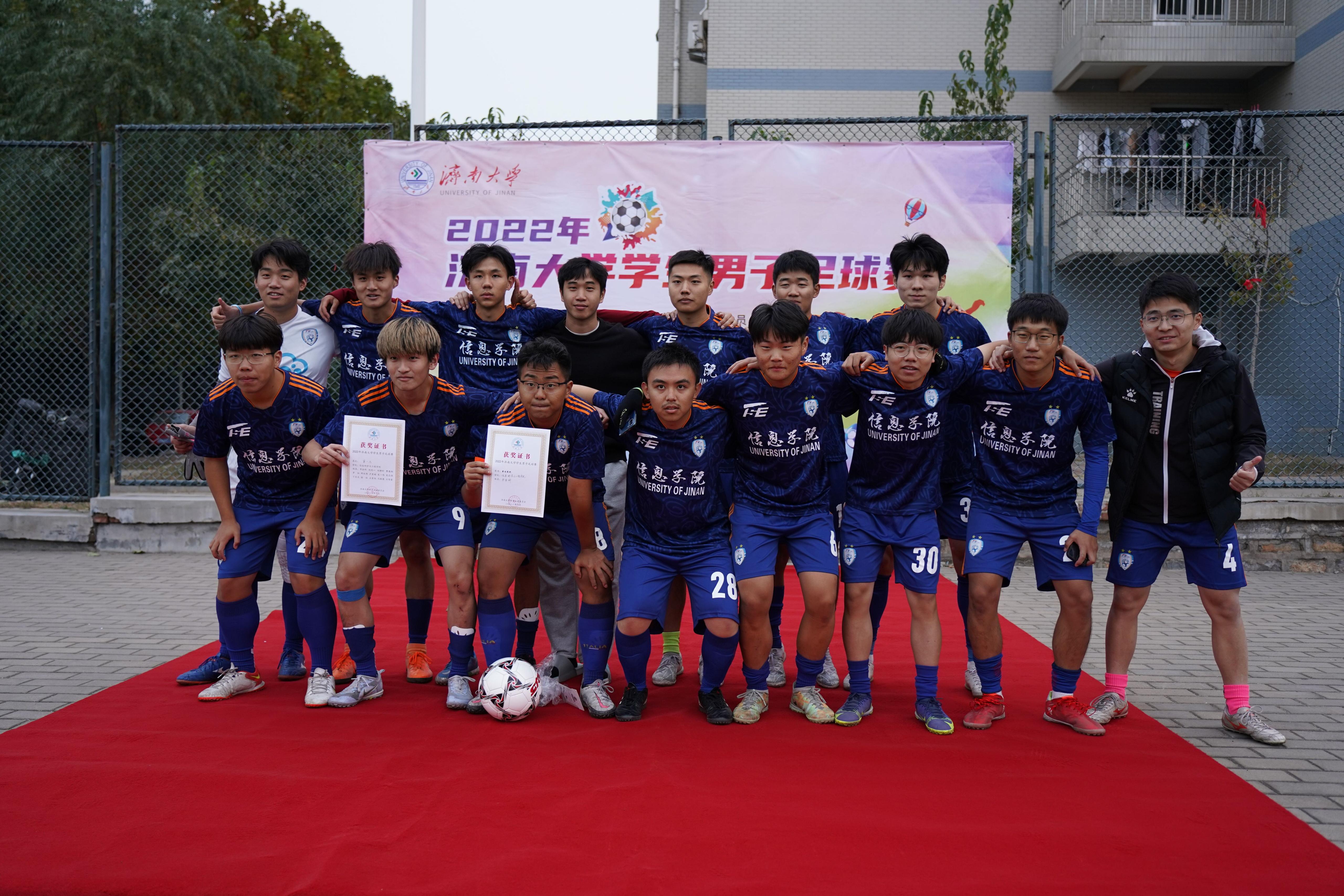 “挥汗绿茵场,青春如朝阳。”2022年济南大学学生男子足球赛于2022年10月28日圆满结束。在本次比赛中,信息科学与工程学院发挥出色,获得第一名。