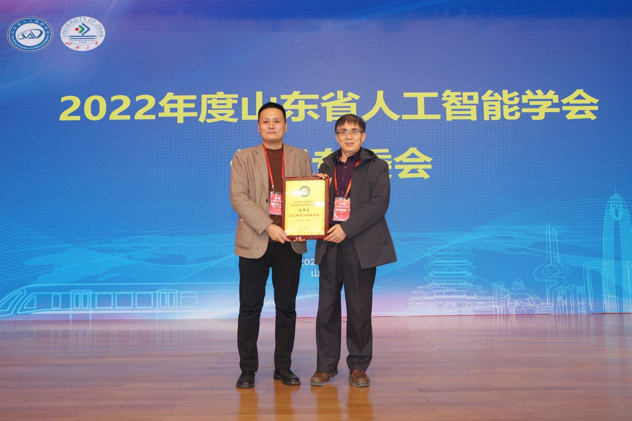 大会报告期间还进行了多项颁奖活动。我校信息科学与工程学院教授、视觉应用与智能技术专委会主任李金屏领取了2022年度山东省人工智能学会优秀专委会奖牌。此外,活动还为山东省计算机视觉最佳和优秀论文奖、山东省视觉创新与应用领航和先进单位颁发了证书与奖牌。