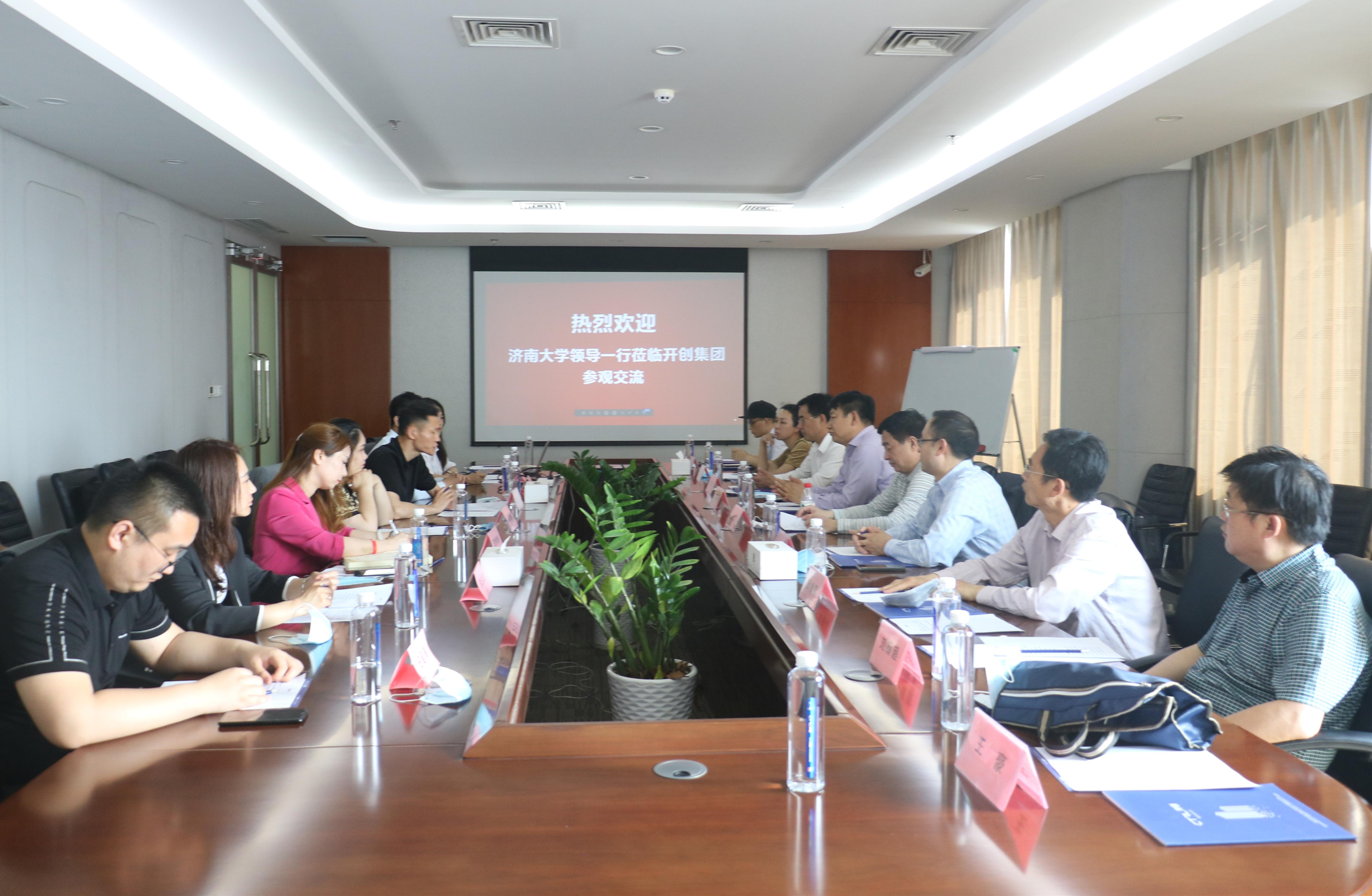 5月21日,济南大学一行赴山东开创集团开展校企合作产教研融合洽谈交流。山东开创集团总裁刘胜楠、副总裁曲维维,山东开创信息有限公司董事长房健,济南大学副校长王志,济南大学教务处处长邱立平,济南大学合作发展处副处长景丽萍,自动化与电气工程学院院长崔焕勇,信息科学与工程学院党委书记邱鲁军、院长陈贞翔、党委副书记刘颖超、副院长荆山等人参加会谈。洽谈会由山东开创信息有限公司总经理郭盼盼主持。
