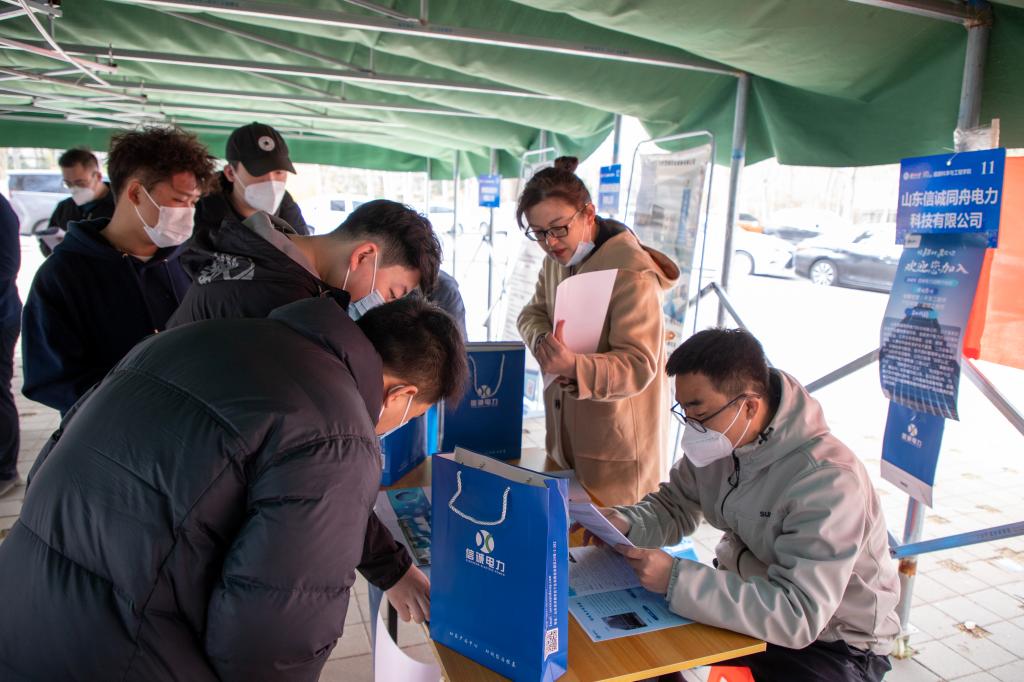 本次招聘会有来自济南超级计算技术研究院、山大地纬软件股份有限公司、中电科普天科技股份有限公司等50余家企业,为学院836名2023届本科及硕士毕业生提供了近1000个招聘岗位,涉及计算机网络、通信工程、电子信息技术等多个领域。招聘会现场人头攒动,参会学生1000余人,毕业生参与热情高涨,积极与招聘人员交流,主动与用人单位咨询了解岗位情况,筛选适合自己的岗位,投递简历近500份。非毕业班同学也积极向用人单位咨询用人需求,为自己下一步的学习和毕业计划奠定基础。招聘会现场还设置了青鸟送岗、征兵宣传、生涯咨询、简历指导、留学咨询等功能专区,帮助学生做好大学生职业规划、生涯规划,完善简历制作,提升面试技巧。